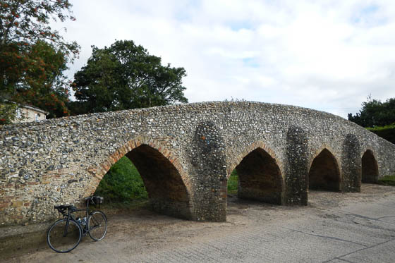 The ancient packhorse bridge at Moulton — in autumn you might have to use it!